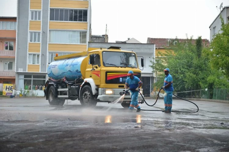 BURSA (İGFA) - Kurban Bayramı öncesinde ilçede bulunan ibadethaneler ve kurban kesim alanında temizlik ve dezenfekte işlemlerini tamamlayan Bursa Yıldırım Belediyesi, bayramda da hijyen tedbirlerini elden bırakmadı. İlçenin dört bir yanında personeller görevlendirirken, vatandaşların steril bir ortamda kurban kestirebilmesi için kesim alanında da hijyen kurallarına azami seviyede dikkat edildi. Kurban Bayramı’nın son gününde ise bayram için alınan tedbirlerin son aşamasına geçildi. Kurban kesim alanının temizlenmesi için yoğun bir çalışma başlatılırken, genel temizliğin ardından ilaçlama yapıldı.