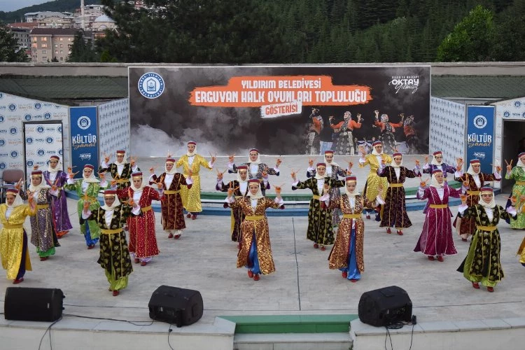 Yıldırım Belediyesi Erguvan Halk Oyunları Topluluğu'nun sahnelediği halk oyunları gösterisi sanatseverlerle buluştu.