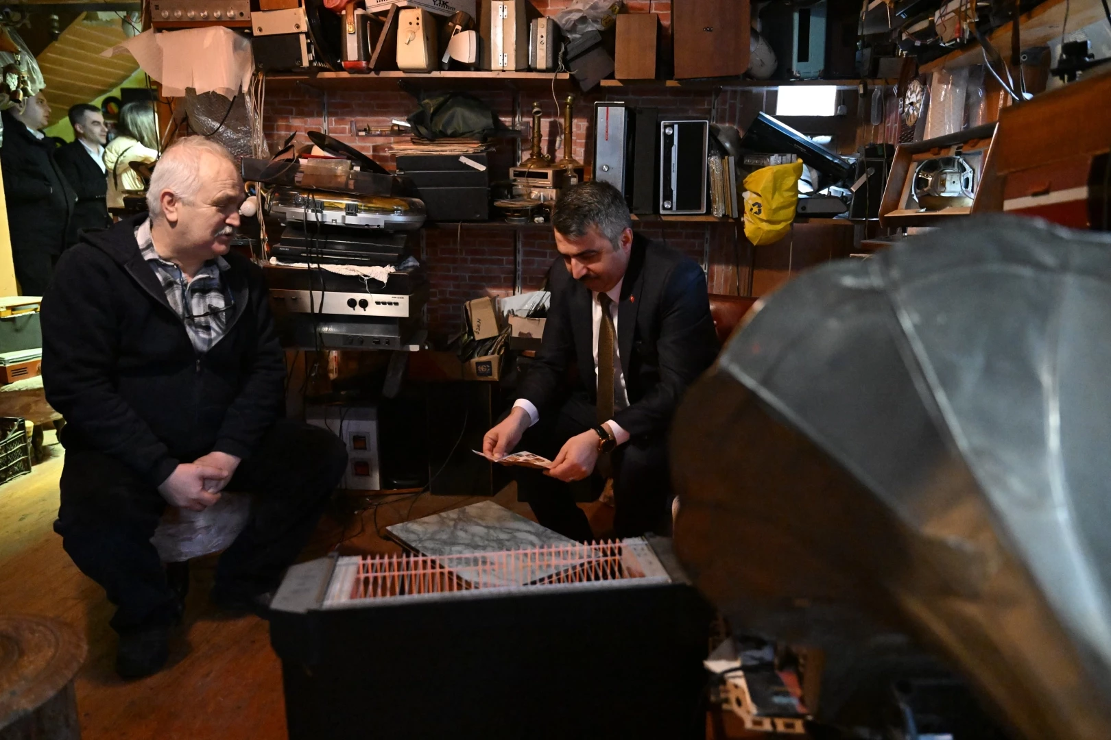 Bursa'da Yıldırım Belediye Başkanı Oktay Yılmaz, 40 yıldır eski radyo, televizyon ve gramofonlara yeniden hayat vererek tozlu raflardan inmelerini sağlayan koleksiyoner Ahmet Ali Şağın’ı ziyaret etti.