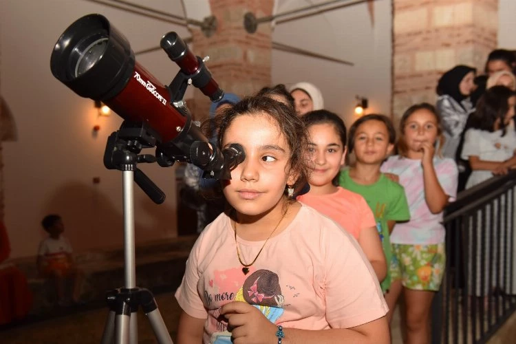 Bursa'da Yıldırım Belediyesi’nin düzenlediği gökyüzü gözlem etkinliğine katılan gençler, ayı ve gök cisimlerini teleskop ile gözlemledi ve astronomi bilimi hakkında bilgilendirildi.