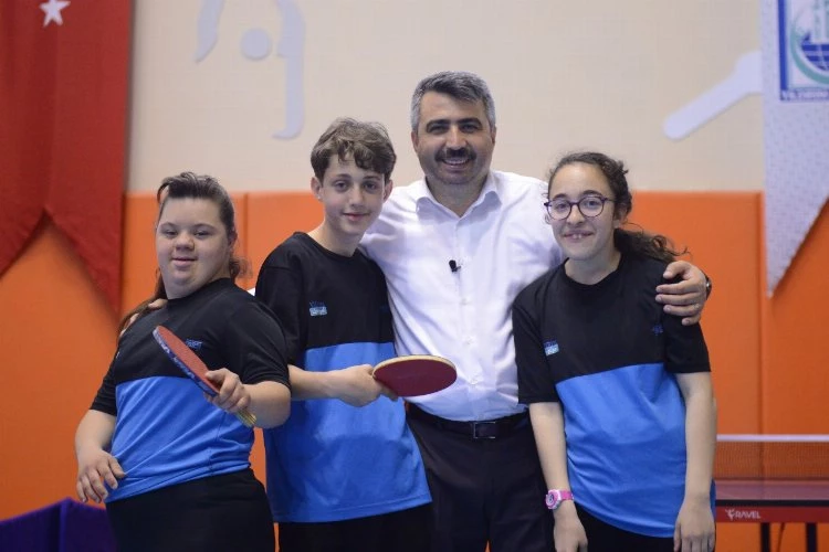 2020 yılından bu yana bin 102 özel gereksinimli çocuğa spor eğitim ve hizmeti verdiklerini ifade eden Başkan Yılmaz, “Türkiye'nin en büyük spor tesislerinden Naim Süleymanoğlu Spor Kompleksi’nde toplumun her kesimine hizmet veriyoruz. Verdiğimiz eğitimlerin arasında özel çocuklar için verilen eğitimler ise hizmetin en değerli kısmını oluşturuyor. Çocuklarımızın yeteneklerinin keşfedilmesi için eğitimlerimiz birebir hoca eşliğinde başlıyor. 3 ay süren, genel spor becerilerinin aktarıldığı derslerin ardından, yetenekleri olan çocuklarımızı gruplara ayırıyor ve takımlar halinde müsabakalara hazırlıyoruz. Temel beceri eğitimlerinin ardından yeteneği olan çocuklarımızı branşlara yönlendirerek özel eğitimler gerçekleştiriyoruz. Yıldırım Belediyesi Naim Süleymanoğlu Spor Kompleksi’nde eğitim alan 3 özel kardeşimiz, Bursa Özel Sporcular Masa Tenisi Şampiyonası’nda büyük başarı elde ettiler. Şampiyonaya katılan 3 sporcumuzdan 1’i altın, 2’si ise gümüş madalya kazanarak bizleri sevince boğdu. Her birini tebrik ediyorum” dedi.