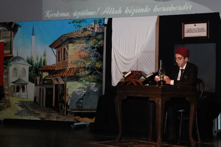 Niyazi Mısri Anadolu İmam Hatip Lisesinin hazırladığı, saygı duruşu ve İstiklâl Marşı ile başlayan programda Okul Müdürü Şaban Dağcı, günün anlam ve önemini belirten bir konuşma gerçekleştirdi. Konuşmanın ardından İstiklâl Marşı'nı Güzel Okuma ve Mektup yarışmalarında dereceye giren öğrencilere ödüllerini Bursa Vali Yardımcıları Sultan Doğru ve Mustafa Kılıç verdi.