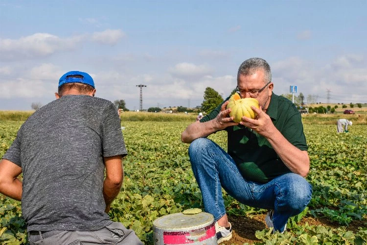 BURSA (İGFA) - Karacabey’e bağlı Çavuş Mahallesi’nde devam eden kavun hasadı bu yıl çiftçinin yüzünü güldürürken, Karacabey Belediye Başkanı Ali Özkan da bölgeye giderek, kavun üreticileriyle ve mahalle sakinleriyle bir araya geldi.