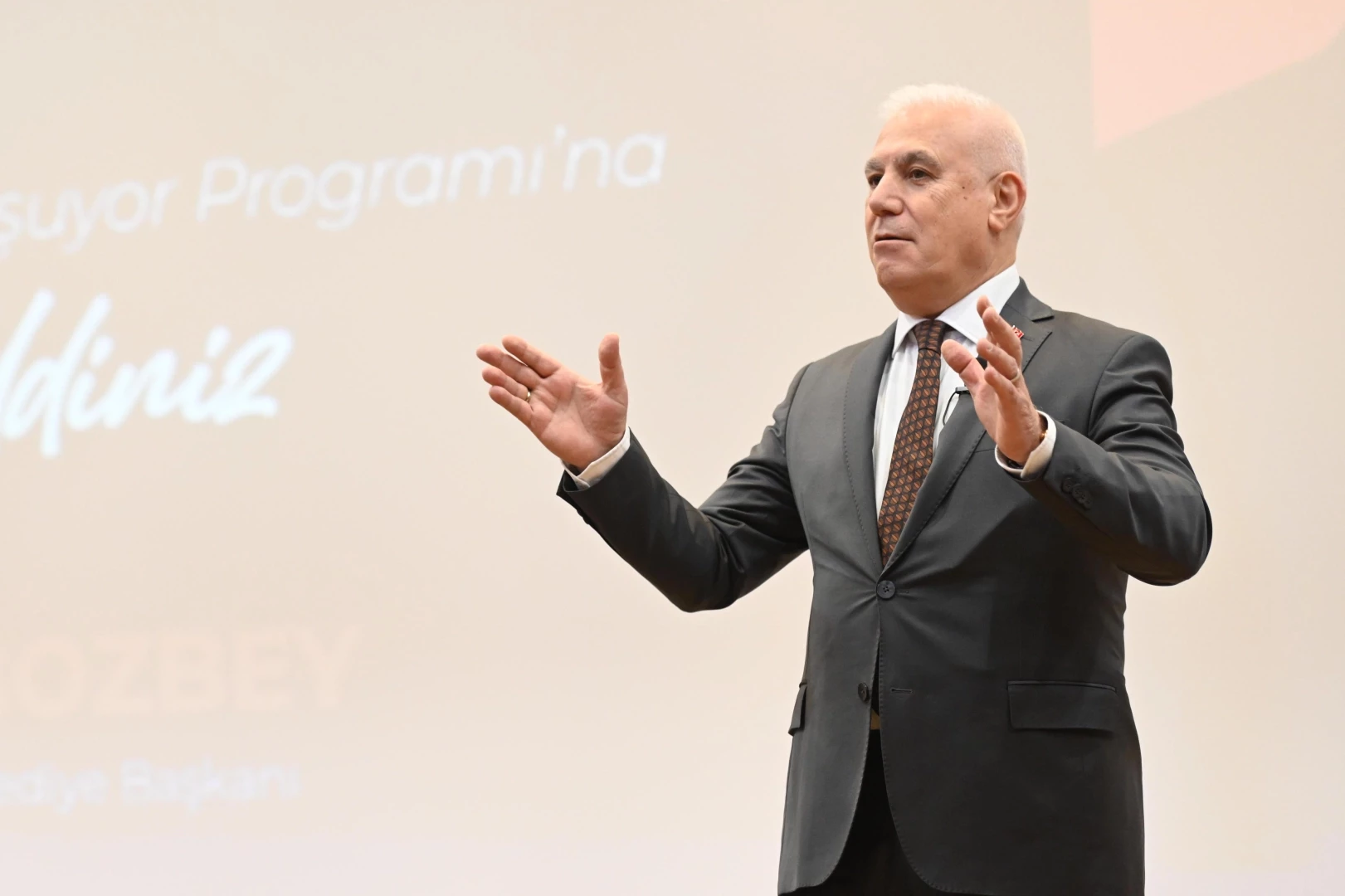 Üniversiteli gençlere başarıya ulaşmak adına hedef koyma tavsiyesinde bulunan ve kendi hayatından örnekler veren Başkan Bozbey, “Geçmişten beri ajanda kullanır ve notlar alırım. 1996 yılında ajandama ‘Acaba belediye başkanı olsam neler yapardım’ diye bir not almıştım. 1999 yılında ilk kez belediye başkanı seçildim. Bursa’da kendi işimde hep öncü oldum. Çünkü hayallerin yanına hedefler koydum ve planlama yaptım. Şu ana kadar hangi hayali kurduysam, kendime ne hedefi belirlediysem hepsini er ya da geç başardım. Çünkü planlı çalıştım. Sizlere de tavsiyem, hayal kurun, hedefler belirleyin ve planlı çalışın. Çünkü başarmanın anahtarı önce hayal kurmak. Aksilikler mutlaka olacak, başarılamayacak hiçbir şey yok” diye konuştu.