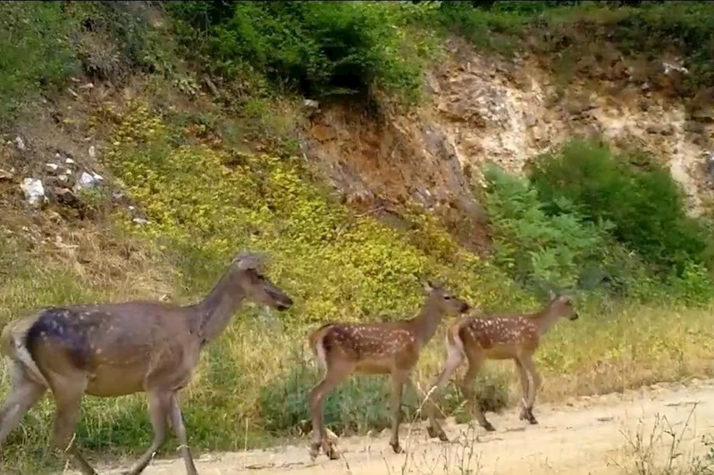 Genellikle yavrularıyla birlikte küçük gruplar halinde yaşayan, sakin adımlarla ilerleyip, ormana doğru giderek gözden kaybolan dişi kızılgeyiklerin görüntüleri, DKMP 2'nci Bölge Müdürlüğü'nün foto kapanına yakalandı.