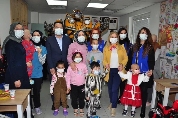 15 Şubat Çocuk Çağı Kanser Günü dolayısıyla SBÜ Bursa Yüksek İhtisas EAH Hastanesi Çocuk Onkolojisi Bölümü'nde tedavi gören minikler için özel bir organizasyon hazırlayan YASAV'ın iyilik meleği kadınlar, onlara yaşadıkları sıkıntıları bir günlüğüne de olsa unutturdu.