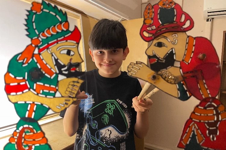 Bursa Karagöz Müzesi’nde izlediği gölge oyunun ardından ‘hayali’ olmaya karar veren ve müzedeki tasarım atölyelerine katılan 11 yaşındaki Ali Demir, ilk oyununu sergilediği ailesi ve sınıf arkadaşlarından tam not aldı.