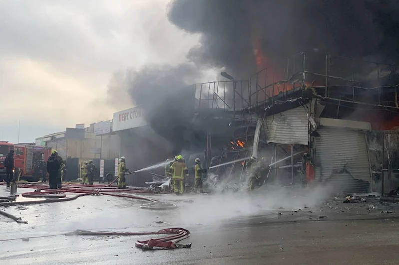 Yiğitler Mahallesi'ndeki Otosansit Sanayi Sitesi'ndeki iş yerinde henüz belirlenemeyen nedenle çıkan yangın kısa sürede büyüdü.