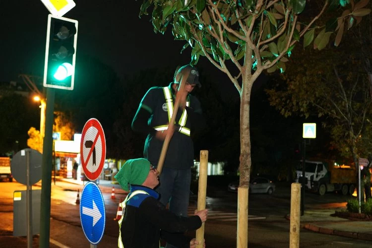 Yaz-kış yeşil vurgusunu öne çıkarmak için herdem yeşil yapraklı manolya ağaçları tercih edilirken, ekipler trafiği aksatmamak için çalışmalara gece yarısından sonra başlayıp, sabahın ilk ışıklarında dikime son veriyor. Bu çalışmalar kapsamında Nilüfer İlçesi Barbaros Caddesi’nde 16 personel, 2 iş makinesi ve 5 kamyonla sürdürülen çalışma ile orta refüj boydan boya 125 adet manolya ağacı ile donatıldı. Yine Nilüfer İlçesi Bilginler Caddesi’nde de 20 personelle 8 gece boyunca sürdürülen çalışma ile orta refüje 134 adet manolya ağacı dikildi.