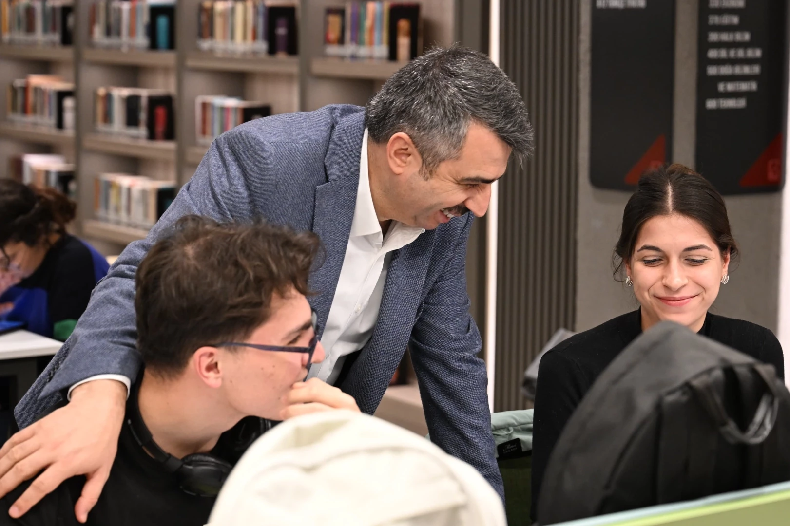 2024 yılında 177 bin 440 kitapseverin ziyaret ettiği Mimar Sinan Uyumayan Kütüphanesi’ni ziyaret eden Başkan Oktay Yılmaz, sınavlara hazırlanan gençlerle sohbet etti ve sınavlarında başarılar diledi.