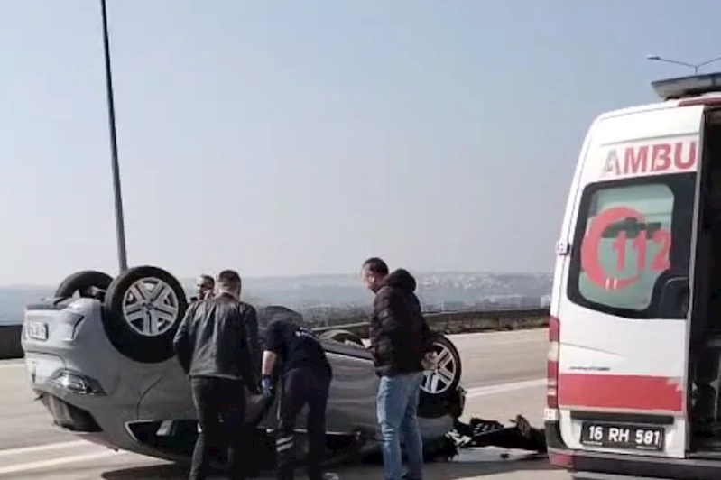 Yaşanan kazada, ismi öğrenilemeyen araç sürücüsü yaralı olarak Bursa Şehir Hastanesine kaldırıldı. (İLKHA)