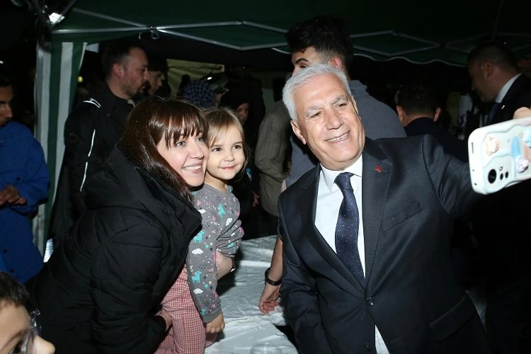 BURSA (İGFA) - Bursa Büyükşehir Belediye Başkanı Mustafa Bozbey, BUSKİ’de gerçekleşen mazbata töreninin ardından Emir Sultan Camii’nde vatandaşlarla bir araya geldi. Emir Sultan Camii meydanında Bursalıların büyük ilgiyle karşıladığı Bursa Büyükşehir Belediye Başkanı Mustafa Bozbey, Bursalıların Kadir Gecesini tebrik ederek vatandaşlara lokma dağıtırken onlarla sohbet de etti. Başkan Bozbey, mazbata töreninin hem Ramazan ayına hem de Kadir Gecesine denk gelmesinden duyduğu memnuniyeti dile getirdi. Vatandaşlardan Bursa Büyükşehir Belediye Başkanlığı görevi için tebrikler alan Başkan Bozbey, teveccühlerinden ötürü Bursalılara teşekkür etti.