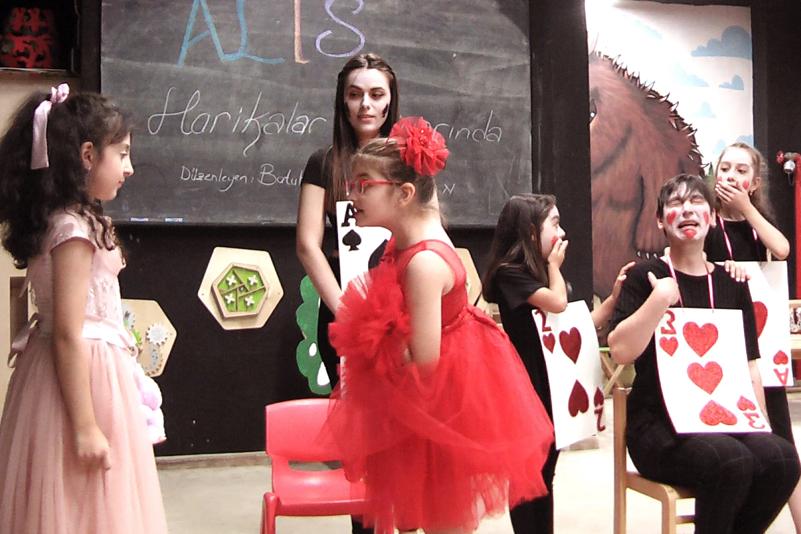 6 ders saati boyunca süren hazırlıkların ardından sahneye çıkan çocuklar, Alis’in tavşan deliğinden düşerek girdiği fantastik dünyada yaşadığı maceraları enerjik ve samimi oyunculuklarıyla canlandırdı. Oyun, eserin özünü korurken, çocuk oyuncuların yeteneklerini öne çıkaran yorumla sunuldu.