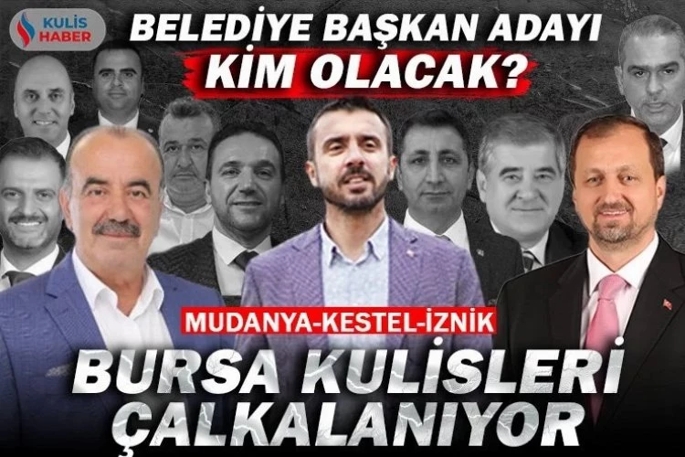 Bursa’nın Kestel, Mudanya ve İznik ilçelerinde belediye başkan adayları kim olacak? Hangi partiden hangi isimler daha şanslı? Bursa kulislerinde hangi isimler öne çıkıyor? İşte çok konuşulacak kulis isimleri…