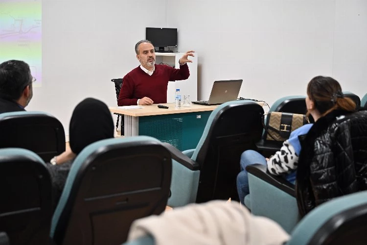 BURSA (İGFA) - Uludağ Üniversitesi Öğretim Üyesi Doç. Dr. Yüksel Okşak ve Ulaştırma Ekonomisi dersi öğrencileri, 5 yıldır olduğu gibi bu yıl da bir derslerini BURULAŞ binasında gerçekleştirdi. Derse konuk olarak katılan Büyükşehir Belediye Başkanı Alinur Aktaş, her geçen gün gelişen, büyüyen, 3 milyon 200 bini aşan bir nüfusa hizmet ettiklerini belirterek, hemen her ilde vatandaşların ilk şikayetlerinin genellikle trafik ve kent içi ulaşım olduğunu söyledi.