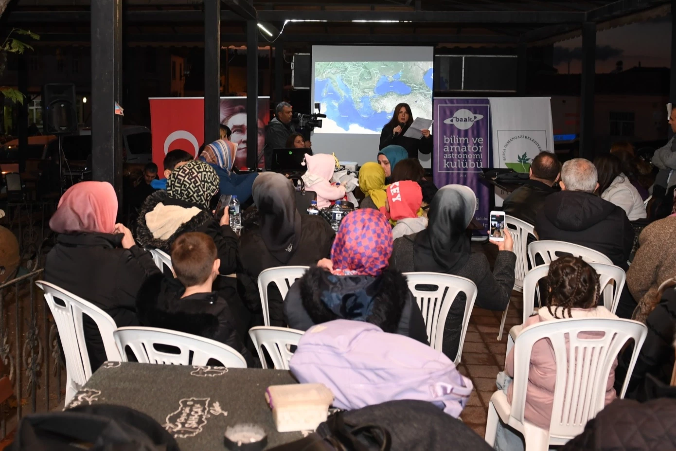 Osmangazi Belediyesi ve Bilim ve Astronomi Kulübü olarak her ay bilim buluşmaları etkinliğini gerçekleştirdiklerini ifade eden Bilim ve Amatör Astronomi Kulübü Yönetim Kurulu Başkanı Cem Özkan, “Kasım ayında Seçköy Mahallesi’nde bir araya geldik. ‘Atatürk'ü Bilimle Anma’ temasıyla gerçekleştirdiğimiz etkinliğimizde, Atatürk’ü yasla anmak yerine onun manevi mirası olan ilim ve akıl ile anmak istedik. Toplumu bilimle buluşturmak istiyoruz. İnsanlara bilim sevgisini aşılamak istiyoruz. Bu akşam teleskop gözlemi yaptık. Atatürk’ü bilimle andığımız temayla ilgili sunumlar gerçekleştirdik. Gökyüzünü tanıttık. Ay ve Satürn gözlemleriyle etkinliğimizi sonlandırdık” dedi.