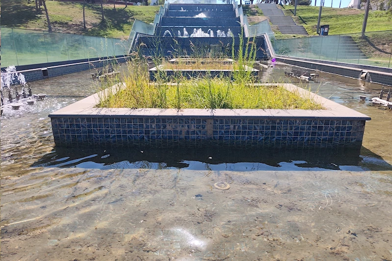 Bahçede bulunan süs havuzlarının zemininin toprakla kaplı olması ve kötü bir görüntü vermesi üzerine belediye yetkilileri ile yaptığımız görüşmede, havuzların kısa aralıklarla periyodik olarak temizlendiğini ancak hak ettiği değeri görmediğini, çocukların içerisine toprak atmasıyla birlikte temizlendikten bir gün sonra bile eski haline gelebildiğini ifade ediyor.