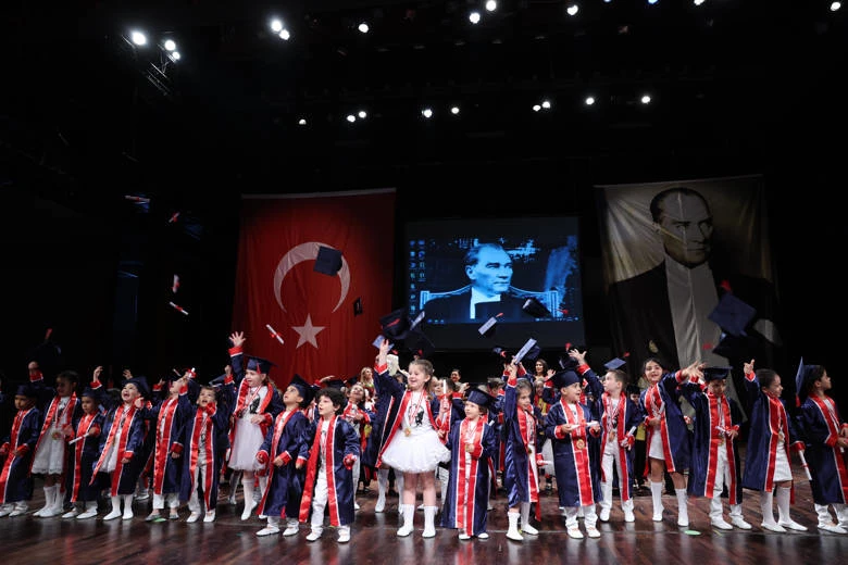 Daha sonra kreş öğrencileri yıl içinde yaptıkları etkinliklerin yer aldığı slayt gösterileri yer alırken, salonu dolduran minik öğrencilerin aileleri büyük bir heyecanla öğrencilerin hazırladıkları gösterileri izledi. Kreş öğrencileri halk oyunları, dans ve müzik gösterileriyle ailelerine büyük bir mutluluk yaşattı. Öğrencilerin yıl boyunca büyük bir emekle hazırladıkları birbirinden renkli gösteriler, sahnede onları izleyen ailelerini hem duygulandırdı hem de gururlandırdı. Kreş öğrencilerin Türk Bayraklı kostümleri ile Atatürk portresi açarak tamamladıkları yılsonu gösterisi büyük beğeni topladı.