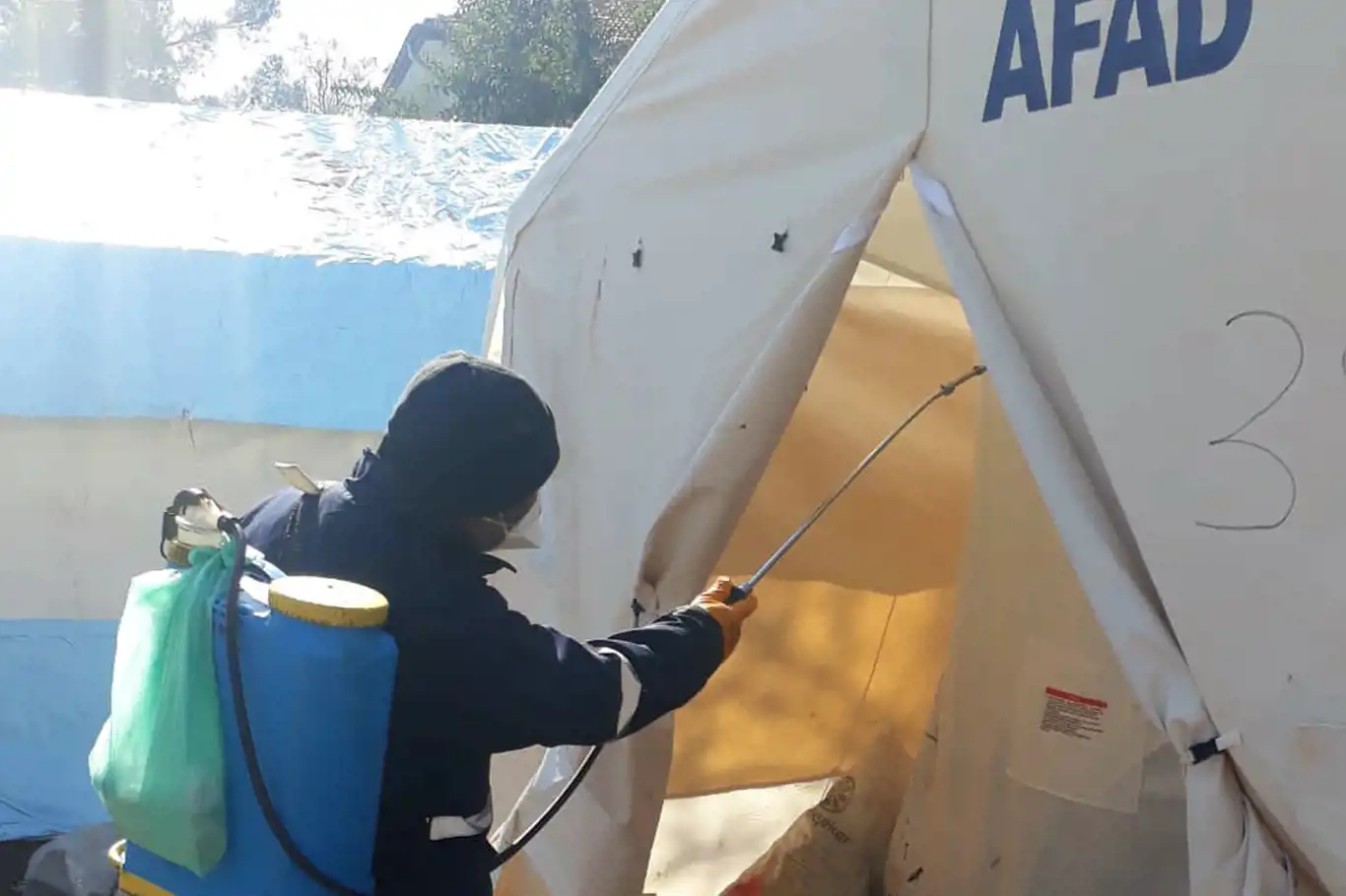 Çadır kentler ve toplantı odaları dezenfekte ediliyor