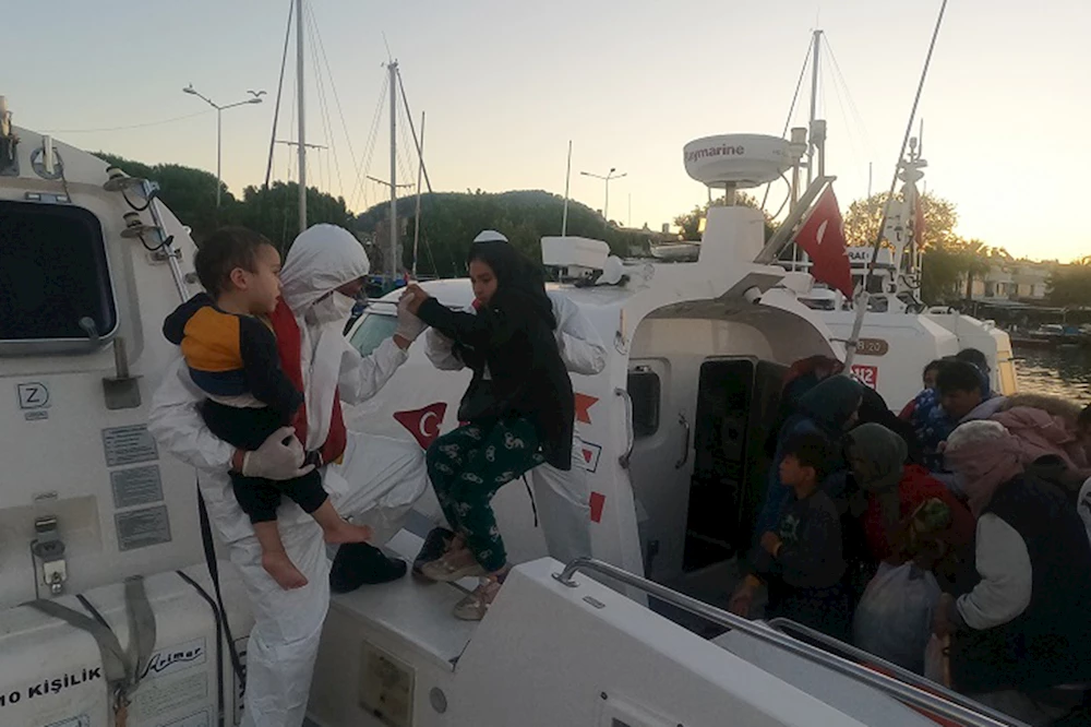Çanakkale'nin Ayvacık ilçesi açık lastiklerinde bottaki 45 göçmen Sahil Güvenlik ekiplerin tarafından kurtarıldı.