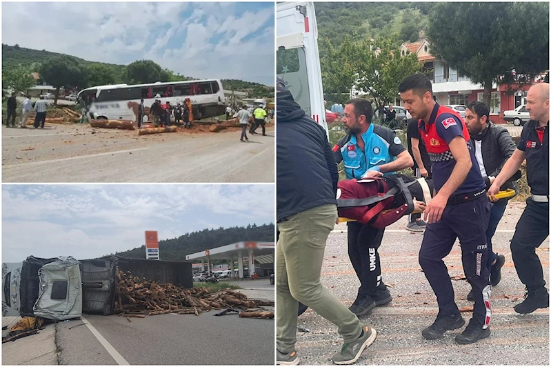 Kazayla ilgili soruşturma başlatılırken, yola savrulan tomruklar Ezine Belediyesi ekipleri tarafından kaldırıldı. (İLKHA)
