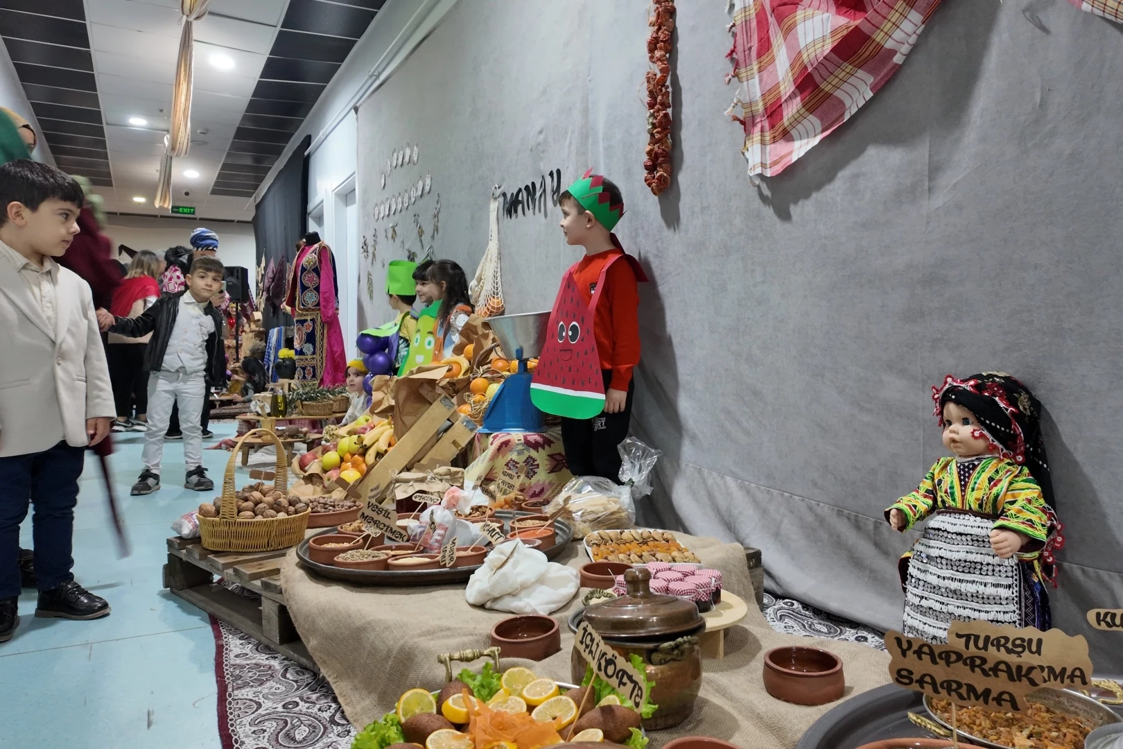 ‘Yerli Malı Haftası’ kapsamında düzenlenen programda, Çayırovalı minikler, ülkemizin kültürünü ve ürünlerini çok güzel bir şekilde sergiledi. Her yöreye uygun kostümler giyen minikler, çiğ köfte yoğurmadan, yün dövmeye, halı dokumadan, zeytin kırmaya birçok alanda gösterilerini sundu.
