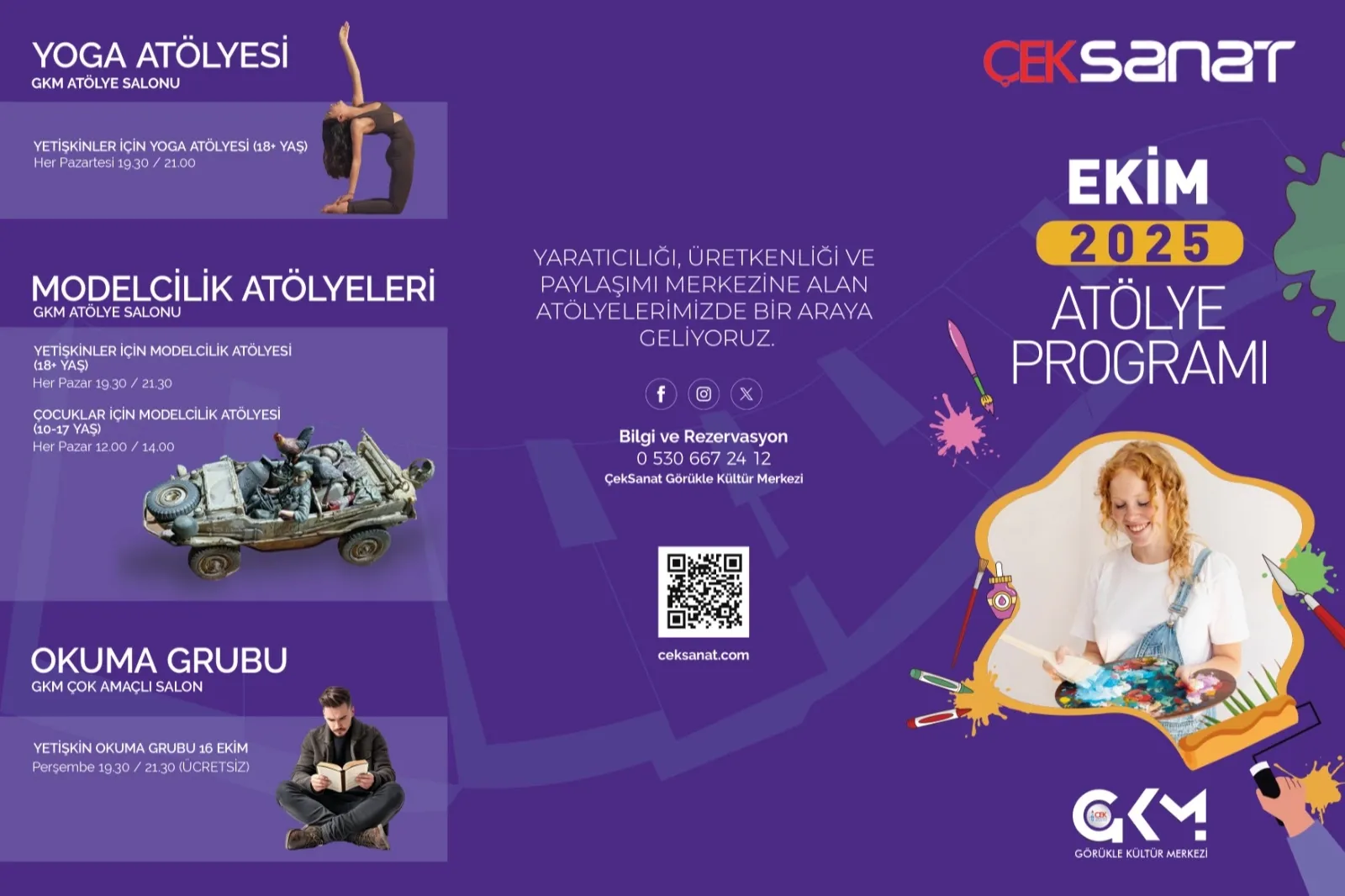 Sezon boyu sürecek ÇEKSANAT çocuk, genç ve yetişkin atölyeleri Ekim ayında Görükle Kültür Merkezi’nde (GKM) başlıyor. Sanatın birleştirici ve iyileştirici gücünden yola çıkan ÇEKSANAT, uzman eğitmenler eşliğinde hazırlanan atölye programlarını Bursa GKM’de hayata geçiriyor.