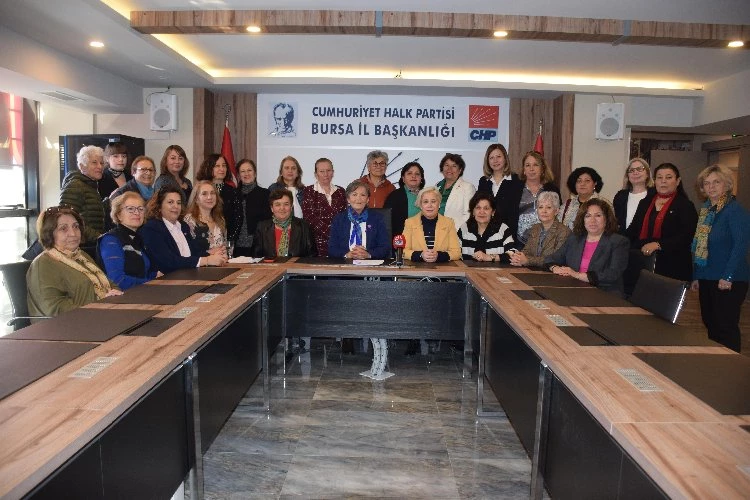 BURSA (İGFA) - CHP Bursa İl Kadın Kolları Başkanı Aysel Okumuş, 81 il, 973 ilçe kadın kolu başkanıyla Medeni Kanun ile ilgili basın açıklaması gerçekleştirdi. CHP İl Başkanlığı’nda düzenlenen basın açıklamasına İl Kadın Kolları Yönetimi, İlçe Kadın Kolları Başkanları ve Yönetimleri ile birlikte İl Yöneticileri katıldı.