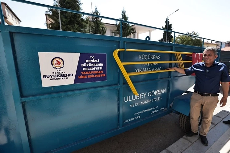 Denizli Büyükşehir Belediyesi, Çal ilçesindeki çiftçilere ihtiyaçları olan katı gübre dağıtma römorku, kuru üzüm eleme makinesi, salça makinesi, küçükbaş hayvan yıkama makinesi ve zeytin eleme makinesi hibe etti.