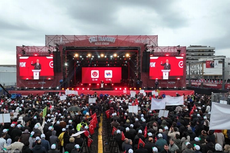 Başkan Soyer ayrıca, “Bugün, İzmir tarihinin dönüm noktalarından biri. 183 milyon euroluk göz kamaştıran bir yatırımla İzmir'e kazandırdığımız Çiğli Tramvayı’nın kurdelesini kesiyoruz. Tramvayın inşaatını kendi dönemimizde başlatmıştık, yine kendi dönemimizde tamamladık. Narlıdere Metrosu’nu bir önceki dönemden yüzde 12 düzeyinde devralmıştık, yüzde yüzünü bitirdik. Bir kaç hafta sonra 287 milyon euroluk yatırımla Narlıdere Metrosu’nu açarak cumhuriyetimizin 100’üncü yılına armağan etmek üzere yine birlikte olacağız. O metro Buca’ya gelecek dedik. Getiriyoruz. 9 Ocak’ta Buca’da, “dev köstebek” denilen tünel sondaj makinelerini toprağın altına indirdik. İzmir tarihinin en büyük raylı sistem projesi olan Buca Metrosu’nun yapımını 765 milyon euroluk bir yatırımla, son sürat devam ettiriyoruz. Bu dev raylı sistem yatırımımızın her bir katresinde, her metresinde, her adımında sarayın değil, halkın alın teri var. Kimseye eyvallahı olmayan, kimsenin önünde el bağlamayan alnı ak, başı ak İzmir'in emeği var. Mustafa Kemal'in evlatlarının emeği vardır. Bu tramvayın temelinde hırsızlık ve haramilik yok. Dürüstlük ve cesaret var. Bizim yatırımlarımızın önünde adam kayırmacılık, rantçılık yok. Birlik var, beraberlik var. Bu meydan muhterislerin ve kifayetsizlerin meydanı değil. Bileğiyle, aklıyla ve vicdanıyla mücadele edenlerin meydanıdır” ifadelerini kullandı.
