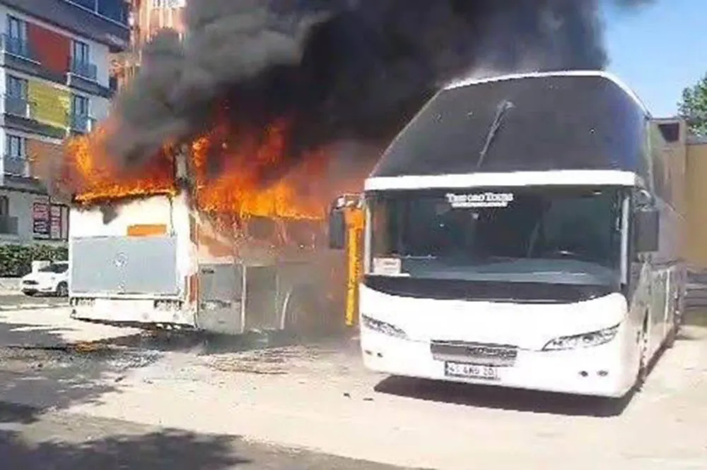 İtfaiye ekiplerinin müdahalesiyle söndürülen yangında 3 otobüs kullanılamaz hale geldi.