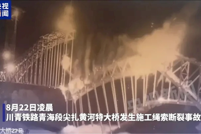 Sichuan-Qinghai Demiryolu'nun Qinghai kesiminde yapım aşamasında olan bir köprünün bulunduğu yerde, çelik halat koptu. Ön soruşturmaya göre, kaza sırasında şantiyede 16 işçi bulunuyordu.