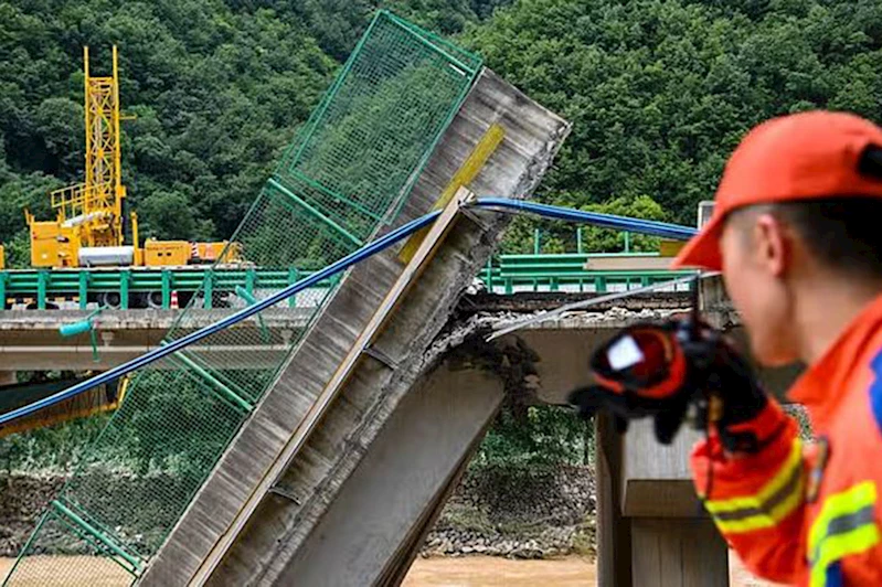Çin'in kuzeybatısındaki Qinghai eyaletinde nehrin üzerinde yapımı devam eden 1.6 kilometre uzunluğundaki demiryolu köprüsü çöktü.