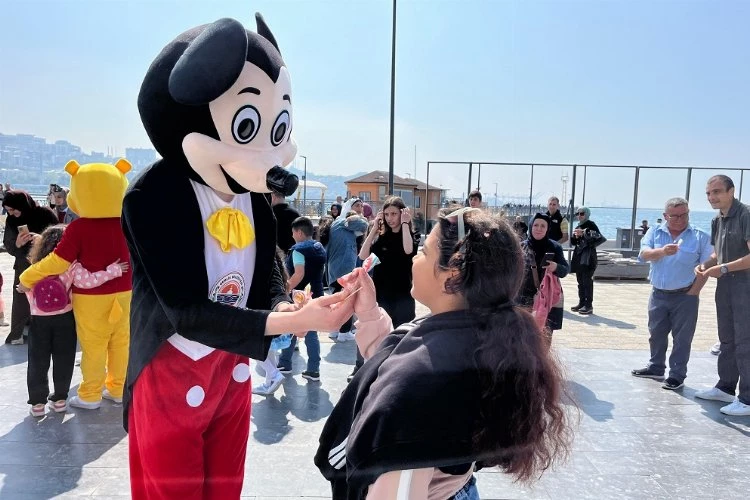 Bayramın ilk günü, renkli kostümleri ile gerek mahallelerde gerekse sahilde miniklerin karşısına çıkan sevimli kahramanlar, Gemlikli çocuklar ile oyunlar oynayıp dans etti.