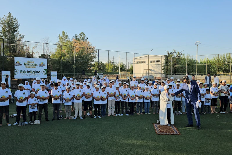 Namazın ardından namaz öğrenen çocuklar, Balpınar Ortaokulu’nun halı saha alanına doğru yürüyüş gerçekleştirdi.