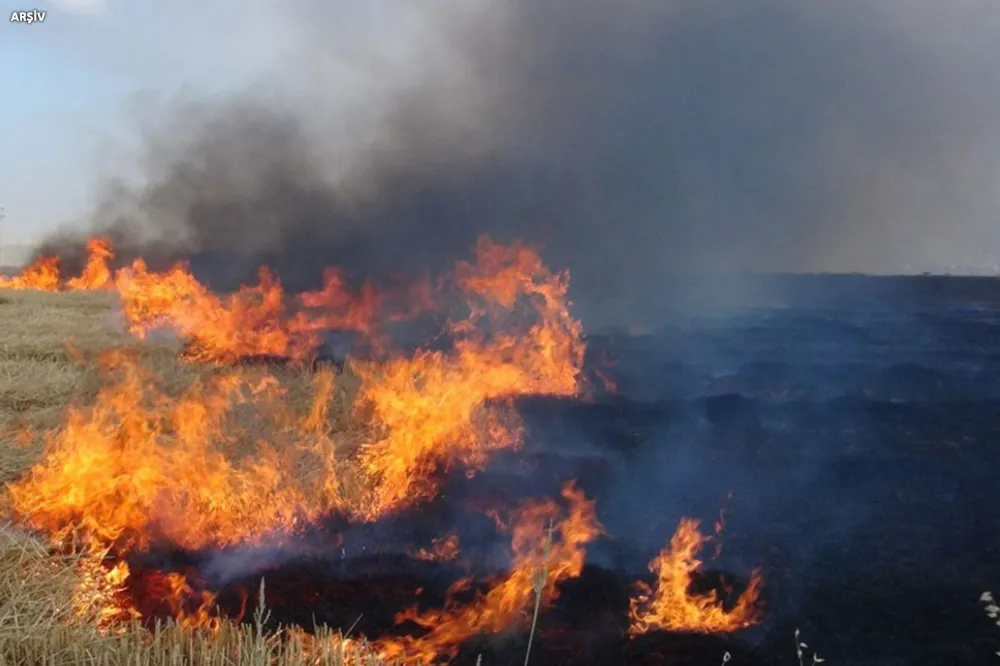 Çıkan yangın nedeniyle yüzlerce dönümlük alanda hasar oluştu.