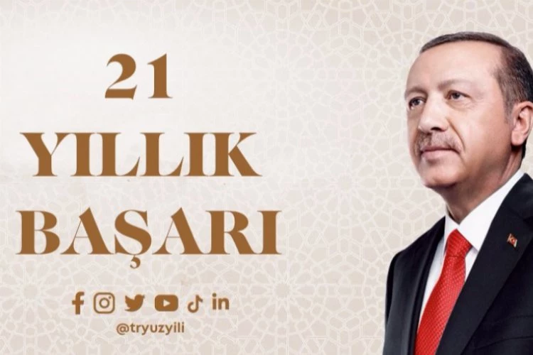 'Bu uğurda ne engeller aştık, bir Allah bir de aziz milletimiz biliyor. Şayet bugün kişi başına millî gelirini 3 bin 600 dolardan 10 bin 650 dolara çıkaran… Yıllık 36 milyar dolar yerine 255 milyar dolar ihracat yapan… Tarımsal gayrisafi yurt içi hasılası 407 milyar lirayı geçen… Merkez Bankası rezervi toplam 115 milyar dolara ulaşan… İstihdamını 32 milyon sınırına getiren, yıllık 51,5 milyon turist ağırlayan… Tarihinin en büyük ulaşım, savunma, teknoloji, enerji, sağlık, konut ve çevre projelerine imza atan... Deprem felaketine rağmen emeklisini, işçisini, memurunu enflasyona ezdirmeyen… Ekonomisi güçlü, altyapısı sağlam, hedefleri büyük, öz güveni yüksek bir Türkiye varsa, bunda 85 milyon vatandaşıyla, 81 vilayetiyle herkesin payı vardır.'