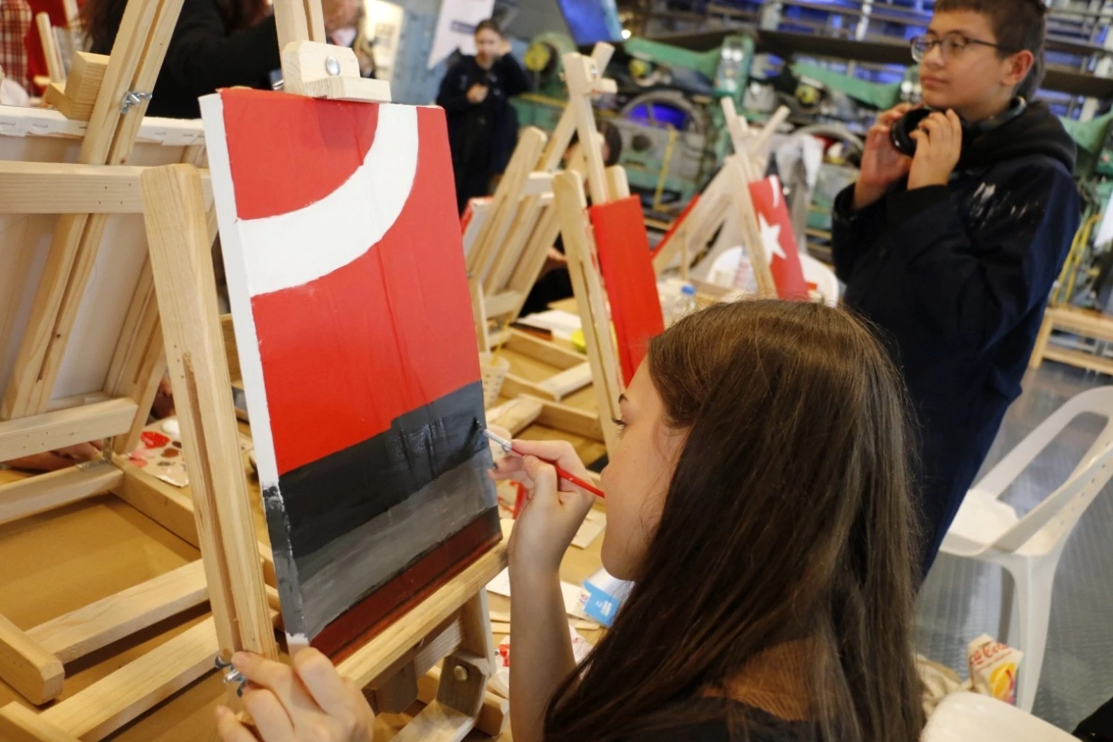 KOCAELİ (İGFA) - Kocaeli Büyükşehir Belediyesi’nin 29 Ekim Cumhuriyet Bayramı kutlamaları kapsamında SEKA Kağıt Müzesinde düzenlenen "29 Ekim 29 Tuval 29 Eser" etkinliğinde katılımcılar, fabrika dönemine ait bir fotoğrafı Türk Bayrağı renkleriyle süsledi. Etkinliğe Kocaeli genelindeki okullardan 29 öğrenci katıldı.