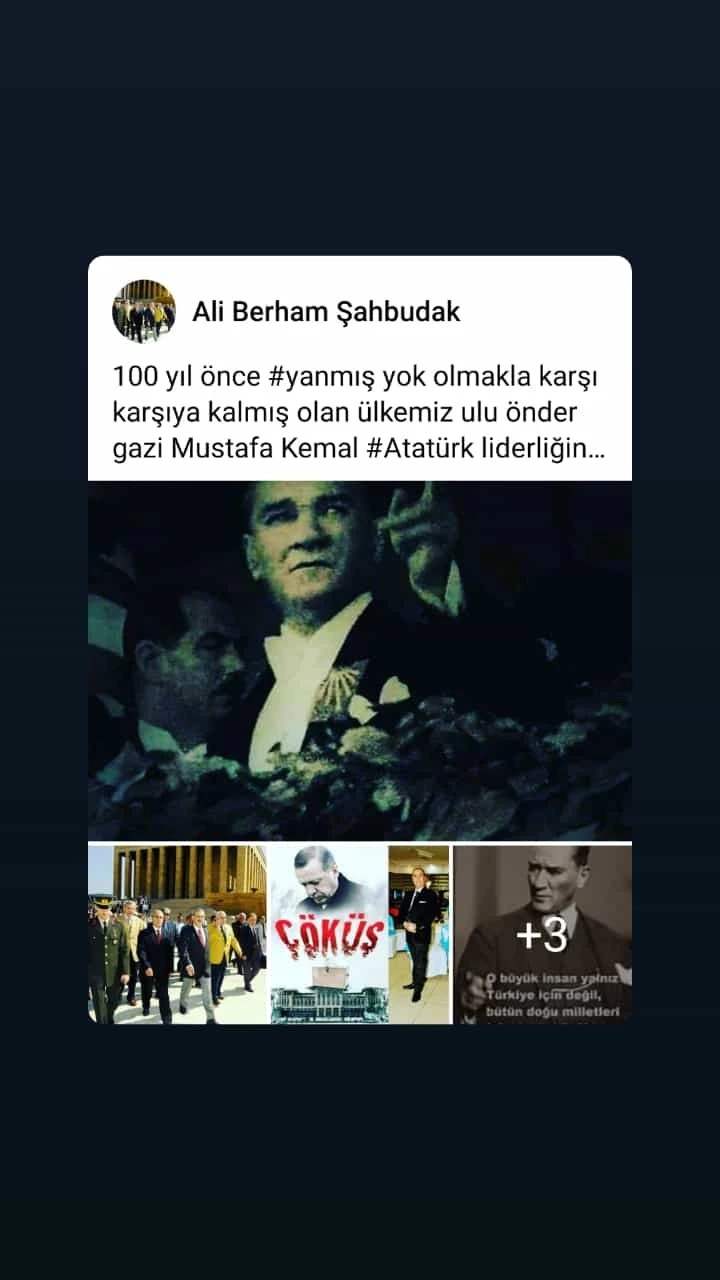 100 yıl önce yanmış yok olmakla karşı karşıya kalmış olan ülkemiz ulu önder gazi Mustafa Kemal Atatürk liderliğin de yenden yanmış küllerinden doğdu bu cumhuriyet.!!!   Az kaldı 'bu onurlu Cumhuriyet ve gururlu Türk Milleti Tıpkı bundan 100 yıl öncesinden olduğu gibi' tekrar ayağa kalkacak ve çağdışı çürümüş güruh sürüsünün oluşturduğu zihniyete sahip yönetiminden mutlaka kurtulacaktır...   Çünkü '100 yıl öncesin de olduğu gibi' bugün de yine ve Türk Millet bu 'çürümüş çağdışı zihniyetin yönetiminde yine' yok olmakla karşı karşıya getirmiştir...   Çünkü tarih tekrar tekerrür etti. !!!