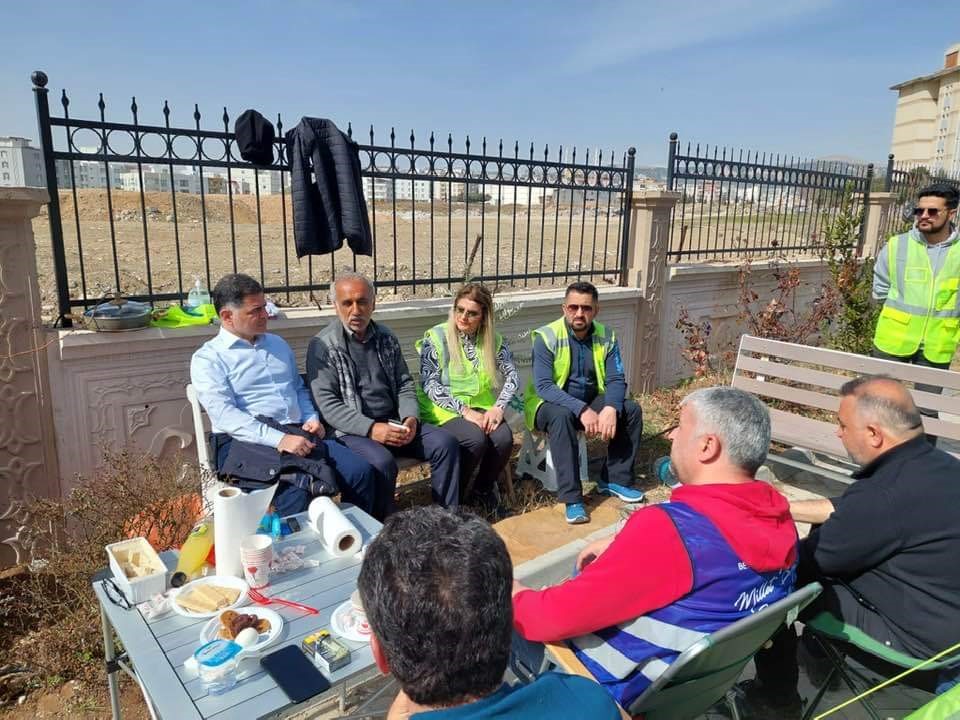 Depremin ilk gününden itibaren bölgede çalışmalara destek olan gönüllülerle birlikte afet mağdurlarının taleplerini dinleyen Cinisli, çözüm için ilgili kişi ve yetkililerle görüşmeler gerçekleştirdi.