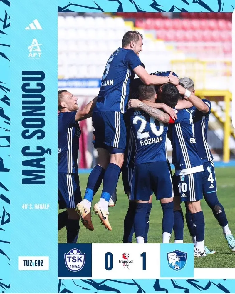 Trendyol 1. Lig'in 10. haftasında Erzurumspor FK, Tuzlaspor'u deplasmanda 1-0 mağlup etti. Karşılaşmanın tek golü 47. dakikada mavi beyazlı ekipten Celal Hanalp'dan geldi.