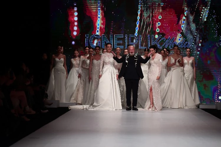 İğne İplik Moda'nın gelinlik defilesinde de Simge Ünal ve Ebru Öztürk gibi ünlü mankenler gelinlik giydiler.