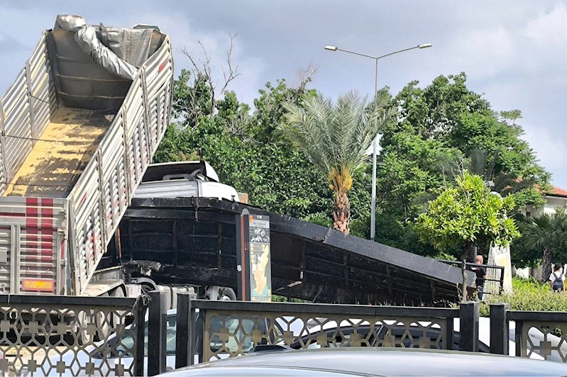 Açık vaziyette ilerleyen damper, güzergâh üzerindeki yaya üst geçidine çarptı.