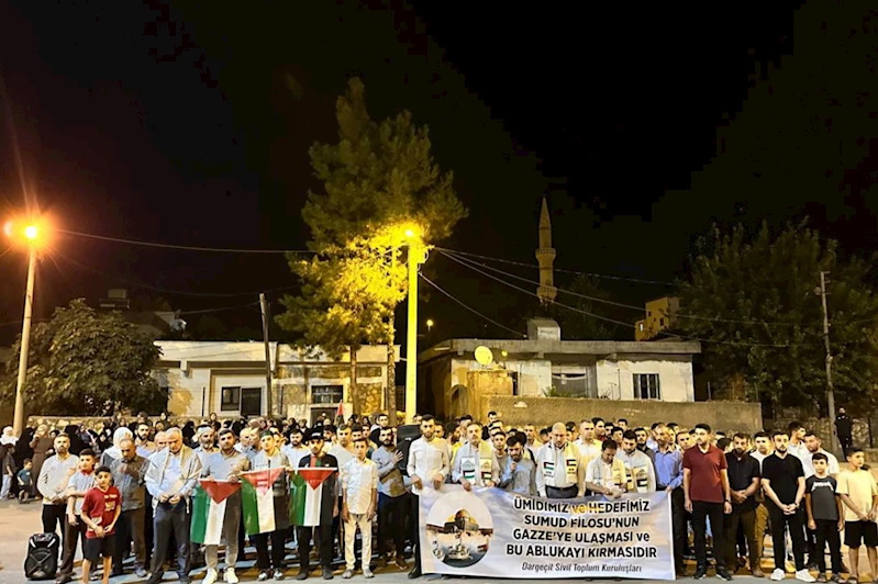 İşgal rejiminin Gazze ablukasını kırmak ve yardım ulaştırmak için yola çıkan Küresel Sumud Filosu'na destek için Dargeçit'te yürüşüş ve basın açıklaması etkinliği düzenlendi.