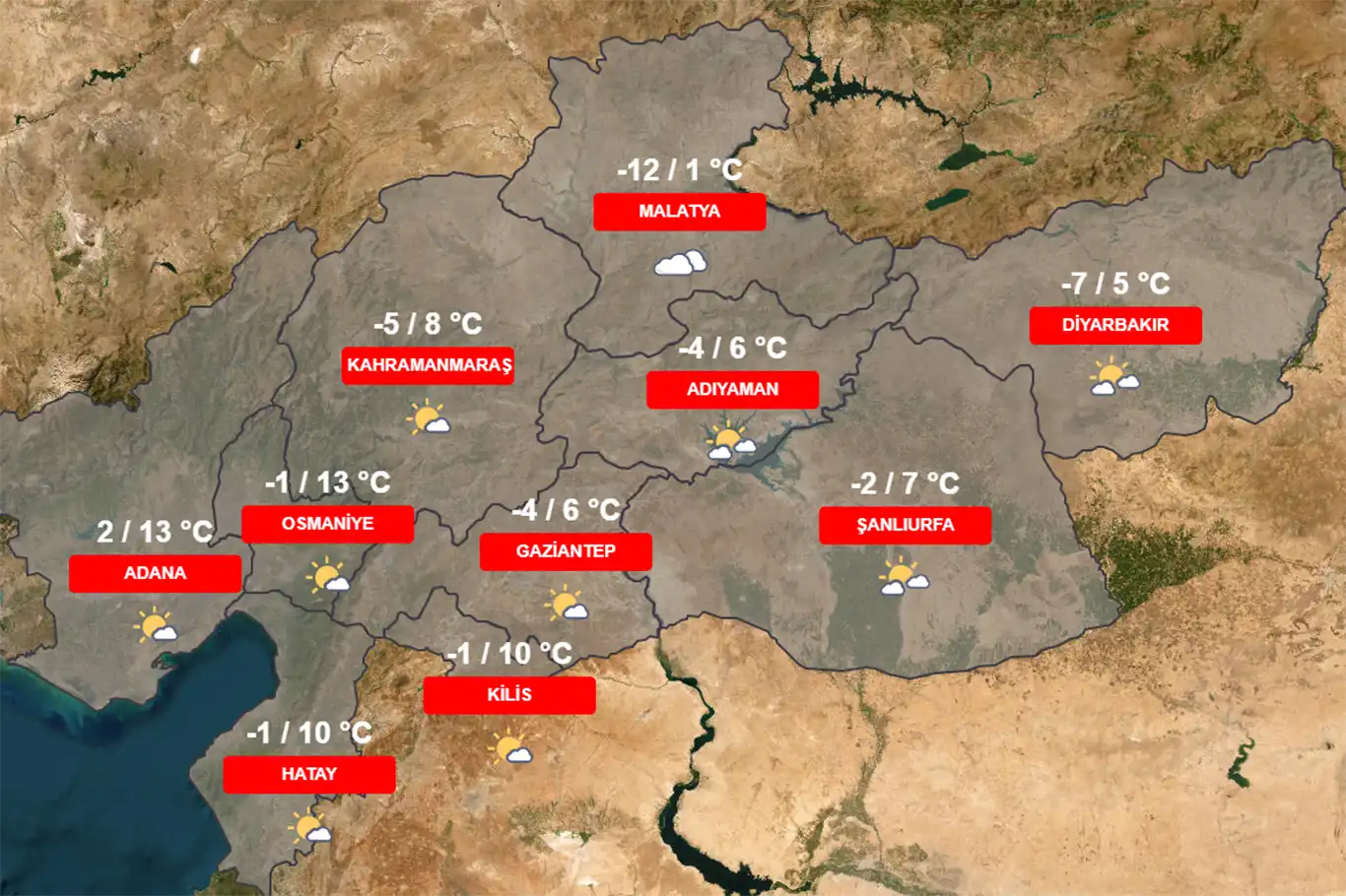 İşte deprem bölgelerindeki güncel hava durumu tahminleri;