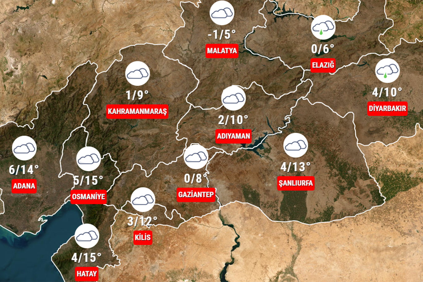 Yapılan son değerlendirmelere göre depremin etkili olduğu 9 ilde gösterisi beklenmiyor. Elazığ ve Diyarbakır'da ise yer yer yağmur yolu.