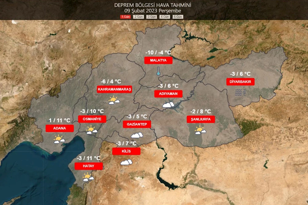 Meteoroloji Genel Müdürlüğü, deprem bölgesi illerinde 5 günlük hava durumu ile ilgili rapor yayımladı.
