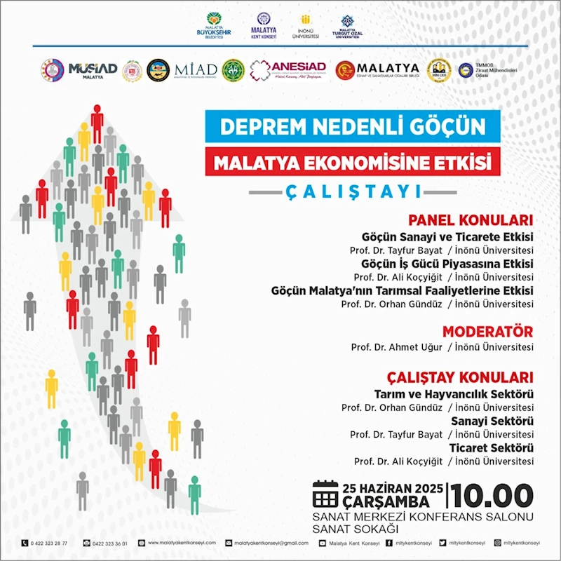 Çalıştay programının panel kısmında “Göçün Sanayi ve Ticarete Etkisi” konusu ile İnönü Üniversite’sinden Prof. Dr. Tayfur Bayat, “Göçün İşgücü Piyasasına Etkisi” konusu ile İnönü Üniversite’sinden Prof. Dr. Ali Koçyiğit, “Göçün Malatya’nın Tarımsal Faaliyetlerine Etkisi” konusu ile Malatya Turgut Özal Üniversitesi’nden Prof. Dr. Orhan Gündüz yer alacak. Program moderatörlüğünü ise İnönü Üniversitesi’nden Prof. Dr. Ahmet Uğur yapacak.