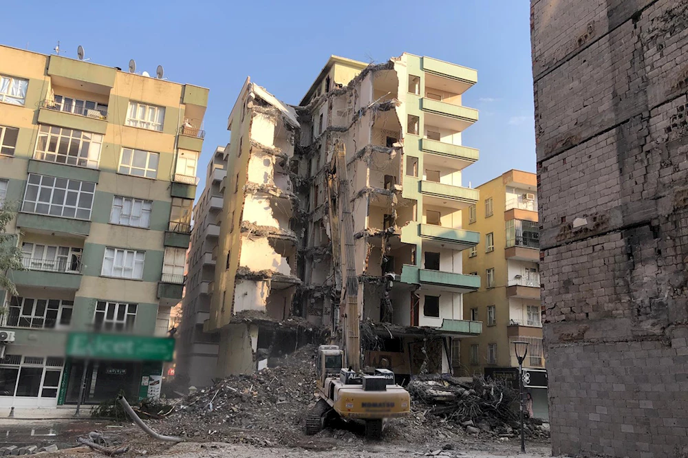 6 Şubat'ta meydana gelen depremlerden etkilenen Şanlıurfa'daki Bahçelievler bölgesinde yıkım çalışmaları sürüyor.