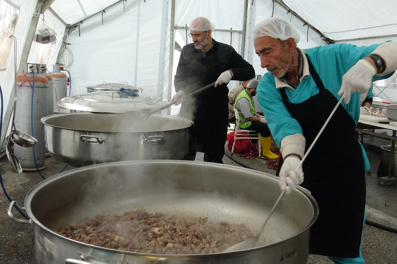 Ramazan hizmetkarları aşçılar, bu işi hiçbir ücret talep etmeden muhafaza ederler, bu Deprem işi Allah rızasını gözeterek yaptıkları için de oruçlu olmalarına rağmen yorulmadıklarını söylediler.